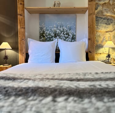 Chambre cosy, idéale pour les couples, pensée comme un cocon de tranquillité.