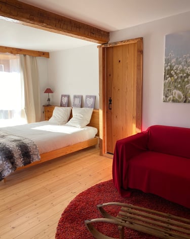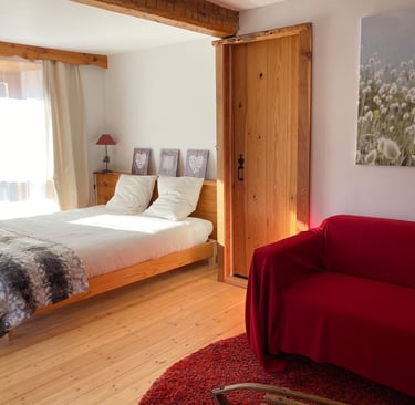 Grande chambre familiale, vue sur les montagnes.Modulable selon vos besoins.
