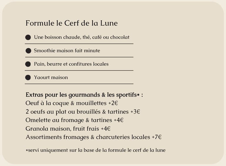 Le petit déjeuner au Cerf de la Lune est un moment à part, une invitation à commencer la journée en douceur.